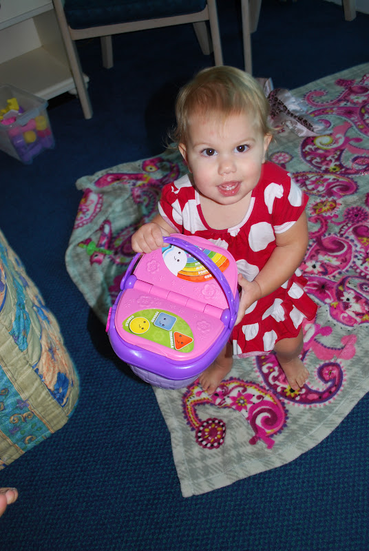 Avery loves to talk on the phone. She puts everything and anything up to her ear and babbles.